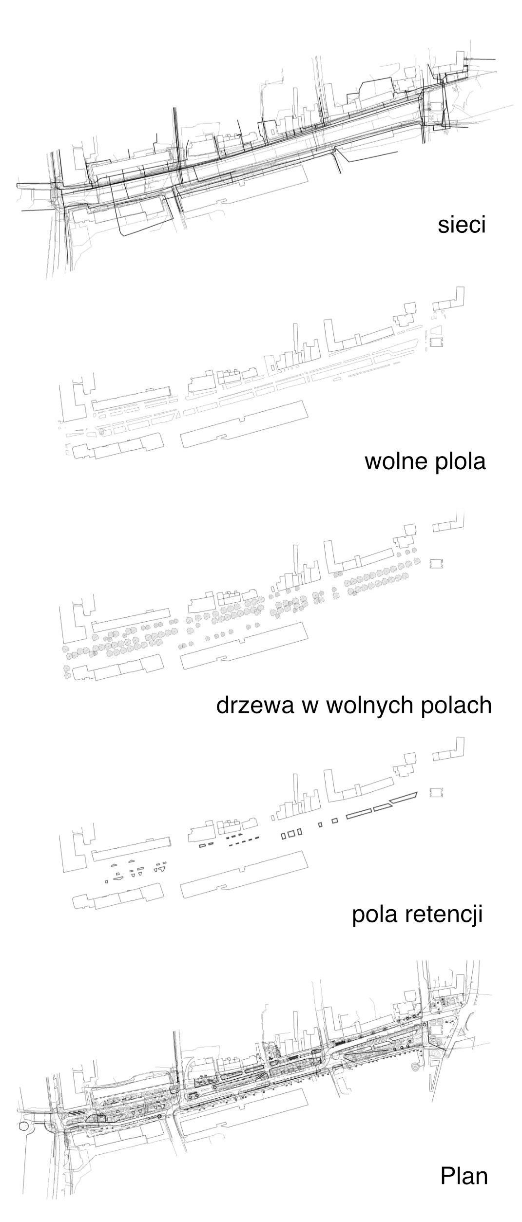 Kolejny element jaki udało nam sie podważyć w tym konkursie to idea nasadzeń jednego gatunku drzew. Nasze rozpoznanie tematu doprowadzilo do propozycji projektowej opartej o wybór rodzimych gatunków drzew, które najlepiej radza sobie w tej części miasta. Gdańsk pod tym względem jest mocno zróżnicowany z uwagi na lokalizację na styku moreny i delty rzecznej oraz zmiennych warunków w ciągu roku.